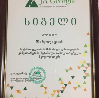ჩვენმა მოსწავლეებმა კიდევ ერთი წარმატება მოიპოვეს – ,,სკოლა ეისს" გადაეცა სიგელი საქართველოში სამეწარმეო განათლების განვითარებაში შეტანილი განსაკუთრებული წვლილისთვის.